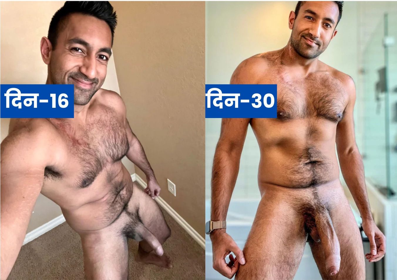 यदि आपने पहले किन्हीं दवाओं के साथ इस समस्या को हल करने की कोशिश की है, तो आप जानते हैं कि सभी प्रयास व्यर्थ रहे थे और यदि कोई प्रभाव हुआ भी, तो उससे केवल इरेक्शन में सुधार हुआ और वह भी बस अस्थायी तौर पर। अगर आप पहली बार इसका प्रयास कर रहे हैं तो आप भाग्यशाली हैं। अब आप सही तरीके के बारे में जान जाएँगे, और बहुत सारे पैसे बचा पाएंगे जो बेकार उत्पादों पर खर्च हो सकते थे। मैं आपको अपने सहायक सचिन शेहवालिया की एक असली तस्वीर दिखाना चाहता हूँ। उसका लिंग 8.9 सेमी बढ़ गया, और संभोग की अवधि 15 मिनट बढ़ गई।